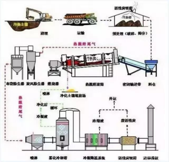 土壤修復(fù)技術(shù)中的熱脫附技術(shù)是指通過直接或間接加熱,將土壤中的有機(jī)污染物加熱到沸點(diǎn)以上,以使有機(jī)污染物從污染介質(zhì)上得以揮發(fā),進(jìn)入氣體處理系統(tǒng)的過程。熱脫附技術(shù)優(yōu)點(diǎn):無復(fù)雜工藝;成本相對經(jīng)濟(jì);不造成二次污染。