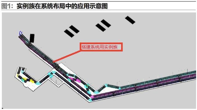 BIM技術(shù)軟件采用族模式管理,條理清晰,尤其參數(shù)族的應(yīng)用使其模型建立、模型管理、系統(tǒng)模型搭建等事半功倍,一勞永逸。一旦系統(tǒng)所需固有族、參數(shù)族建立完成后,設(shè)計人員可在沒有局域網(wǎng)的數(shù)據(jù)系統(tǒng)下進行工作,提高了出差技術(shù)人員操作的便捷性。在自動化物流系統(tǒng)方案設(shè)計初期,可利用參數(shù)族所生成的實例族模型,進行整體系統(tǒng)布局信息化模型的快速搭建(如圖1),為后續(xù)工作埋下伏筆。并且,此信息化系統(tǒng)模型可進行三維渲染,給業(yè)主更為直觀的宣傳介紹,有助于提升中標幾率。