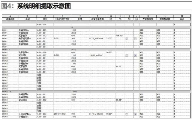 而在BIM技術(shù)軟件的應(yīng)用中,僅通過其中的一款Revit軟件便能減輕設(shè)計人員的工作量,且能快速提取設(shè)計所傳遞的相關(guān)信息,即在平面布局完成的同時便可提取相關(guān)零部件的參數(shù)及數(shù)量信息(如圖4),便于快速生產(chǎn)的組織;同時,提高了各工程材料預(yù)算的準確性,減少冗余采購量,節(jié)省資金。