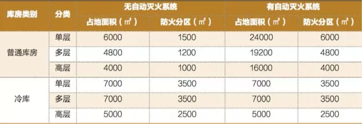 4.倉庫占地面積和防火分區(qū)(僅供一般性參考,視具體情況而定)