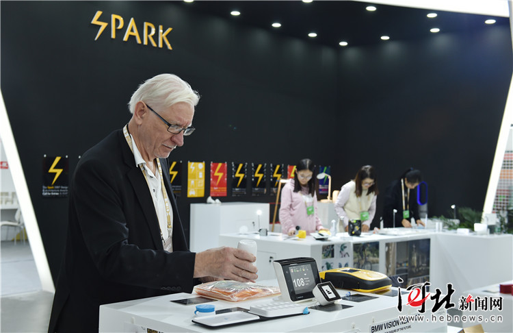 2018年10月17日,星火獎展區(qū),星火設計獎主席古彼特正在仔細對照展品和標簽。記者趙海江、田明攝影報道