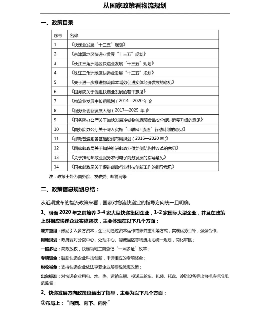 從近期發(fā)布的物流政策來看,國家對(duì)物流快遞業(yè)的指導(dǎo)方向統(tǒng)一且明確。