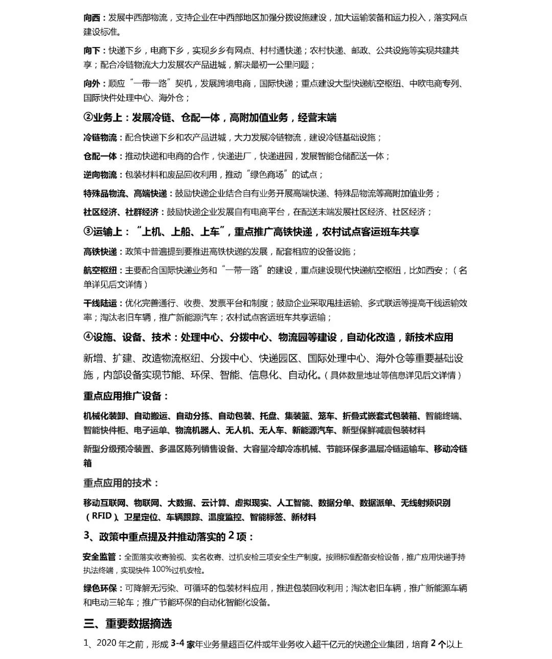 (2)快遞發(fā)展方向政策也給出了指導(dǎo),主要為以下幾個(gè)方面: