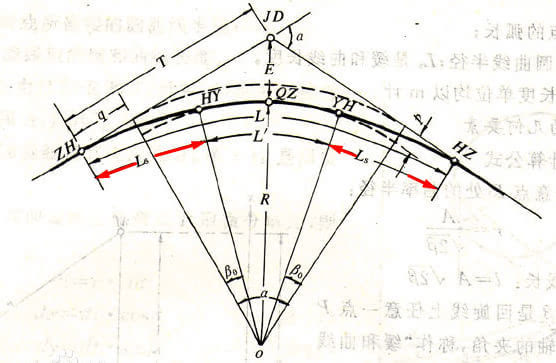 一般由直線、緩和曲線、圓曲線構成。什么叫緩和曲線呢?是一個曲率連續變化的曲線,此例中是連接直線與圓曲線之間的過渡曲線。這樣就能逐漸入彎和出彎道啦。【Ls段就是緩和曲線段】
