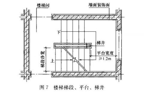 注:螺旋樓梯和扇形踏步離內(nèi)側(cè)扶手中心0.250m處的踏步寬度不應(yīng)小于0.220m