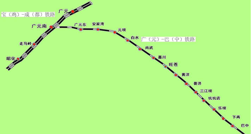 廣巴鐵路廣元至普濟段原設(shè)計時速為60公里/小時;普濟至樂壩段設(shè)計時速僅為30公里/小時,樂壩至巴中段設(shè)計時速100公里/小時,全線為非電氣化鐵路。