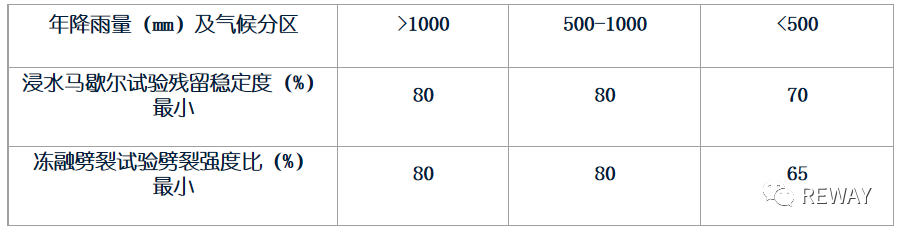 注:對于有條件的地方,為了減少凍融劈裂試驗因空隙變異而造成的試驗結(jié)果的偏差。可采用控制試件成型空隙率的AASHTOT283方法,指標同凍融劈裂試驗要求。