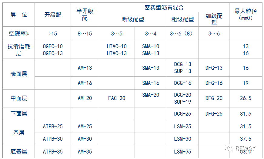 (1)各級公路均宜選用半剛性材料做基層、底基層。為減少水損害和低溫裂縫,對水泥穩(wěn)定粒料類,石灰、粉煤灰穩(wěn)定粒料類的上基層,其混合料級配組成設(shè)計宜用骨架密實型結(jié)構(gòu),以提高半剛性基層的抗沖刷、抗開裂、抗凍的性能,并可減少表面浮漿,利于層間緊密結(jié)合。