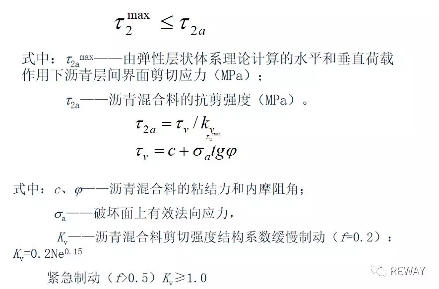 (4)加鋪瀝青面層應(yīng)進行剪切應(yīng)力驗算,以避免面層出現(xiàn)車轍、波浪、推擠、滑移和剪裂等破壞。