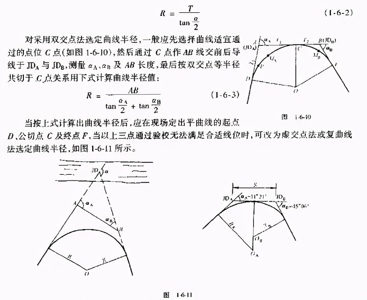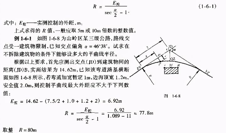 當(dāng)已知交點偏角.其他條件不受限制時,如果平曲線半徑選得過小,則曲線長度太短顯然對行車不利。此時應(yīng)用平曲線的最短允許長度來控制半徑,其計算公式為