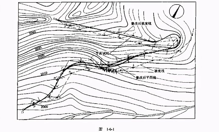 紙上定線是一個反復(fù)試定線路的過程,平面試線的修改次數(shù)越多,最后所定路線的設(shè)計質(zhì)量越高,直到認(rèn)為再修改己得不到顯著效果時,紙上定線工作才算完成。