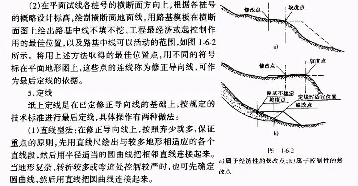 這是在逐段安排的小控制點之間,根據(jù)技術(shù)標(biāo)準(zhǔn),結(jié)合自然條件,綜合考慮平縱橫三個方面因素,適當(dāng)移動交點,進(jìn)行穿線,具體定出路線中線位置的工作。具體定線在詳測時進(jìn)行。