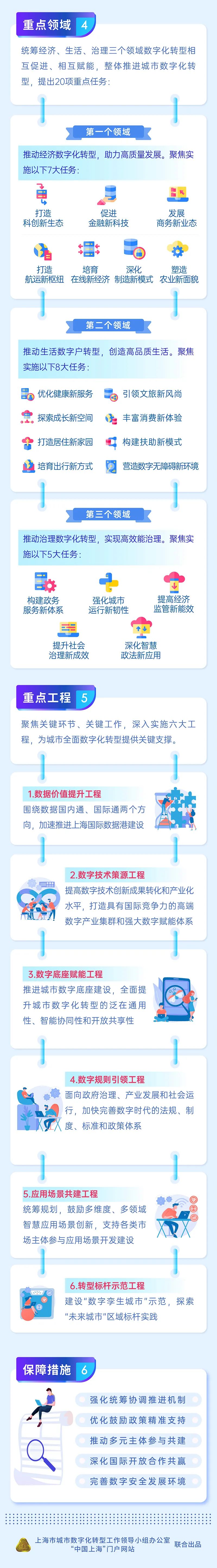 四是完善保障體系,構建數字化轉型新生態。完善數字時代的法規、制度、標準和政策體系,研究推進《上海市數據條例》《上海市城市數字化轉型促進條例》綜合性立法和若干專項立法。加強經濟數字化轉型的制度供給,優化市場準入制度,探索新型監管機制。完善生活數字化轉型的規則規范,加強數字信用體系建設,建立數字社會權益保護機制。同時,強化統籌協調推進機制,優化鼓勵政策精準扶持,推動多元主體參與共建,深化國際開放合作共贏,完善數字安全發展環境,為城市數字化轉型提供全方位保障。