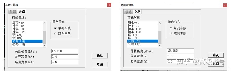 今后設(shè)計(jì)工作中:(1)對(duì)于邊坡穩(wěn)定計(jì)算,直接選擇公路I級(jí)-單列車隊(duì)或雙列車隊(duì)都可,分布位置距路基邊緣一個(gè)土路肩寬度比較科學(xué)合理,因?yàn)檐囕v橫向分布列數(shù)對(duì)高邊坡穩(wěn)定系數(shù)影響不大;(2)對(duì)于擋墻計(jì)算,直接選擇“2004路基規(guī)范擋土墻車輛車載”,軟件會(huì)根據(jù)擋墻高和填土容重自動(dòng)計(jì)算換算土柱高度,與規(guī)范規(guī)定一致;(3)對(duì)于瀝青路面結(jié)構(gòu)設(shè)計(jì)驗(yàn)算,無需對(duì)行車荷載做過多考慮,因?yàn)樾熊嚭奢d主要影響路面結(jié)構(gòu)的力學(xué)計(jì)算,而這已在HPDS里內(nèi)置的計(jì)算程序完成了。