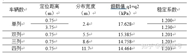 可見車輛數(shù)對(duì)穩(wěn)定系數(shù)的影響不大,這與《路基路面工程》中“行車荷載對(duì)較高邊坡的穩(wěn)定性較小”一致。而車輛分布在硬路肩外邊緣時(shí)較不利。故在后面的設(shè)計(jì)工作中,個(gè)人認(rèn)為直接取公路I級(jí)單列或雙列都可以,定位距離取土路肩寬度較合適。因?yàn)闀?huì)出現(xiàn)車輛停在硬路肩上的情況(這種情況對(duì)于穩(wěn)定較不利)。