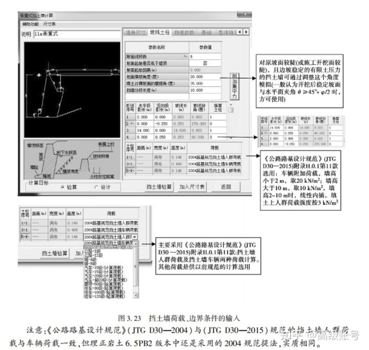 對(duì)于擋土墻的結(jié)構(gòu)設(shè)計(jì)和驗(yàn)算,在《公路路基設(shè)計(jì)規(guī)范》(JTG D30-2015)的附錄H里對(duì)行車荷載如何考慮是有規(guī)定的,H.0.1的11條,核心思路也是將車輛荷載換算為對(duì)應(yīng)土柱高度,但是相較穩(wěn)定計(jì)算則考慮的更為簡單,它的車輛荷載附加荷載強(qiáng)度值是給定的,10~20kPa,按照規(guī)定取就行了。