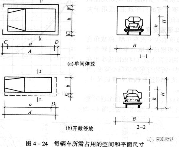 ● 90°直角停放時(shí)可以從兩個(gè)方向進(jìn)出車(chē),所用面積指標(biāo)最小,但需要較寬的行車(chē)通道,適用于大面積多跨的停車(chē)間。