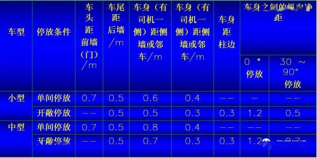 (1) 停放角度及停駛方式,一個(gè)柱距內(nèi)停放車(chē)輛臺(tái)數(shù);