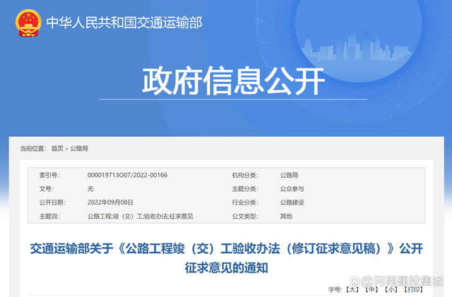 為促進(jìn)公路基礎(chǔ)設(shè)施高質(zhì)量發(fā)展,進(jìn)一步規(guī)范公路工程竣(交)工驗(yàn)收工作,我部對(duì)《公路工程竣(交)工驗(yàn)收辦法》進(jìn)行了修訂,現(xiàn)向社會(huì)公開(kāi)征求意見(jiàn)。公眾可通過(guò)以下途徑和方式提出反饋意見(jiàn):