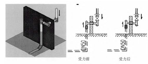 室內(nèi)的燃?xì)夤艿劳ǔ殇摴堋⒉讳P鋼管等,由于自身重量大,在環(huán)境溫度的作用下會(huì)產(chǎn)生熱膨脹、冷收縮,從而縮短管道的使用壽命。在高層住宅建筑中,由于使用的燃?xì)庵惫荛L(zhǎng)度越長(zhǎng),其自身重量也越大,其管道應(yīng)力比管材的極限值要大時(shí),就會(huì)產(chǎn)生變形、損壞,進(jìn)而引起安全事故。