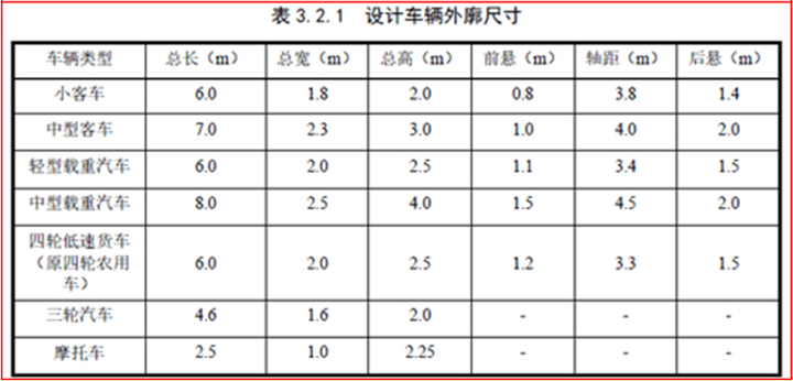 《規(guī)范》表3.2.1 設(shè)計(jì)車輛外廓尺寸