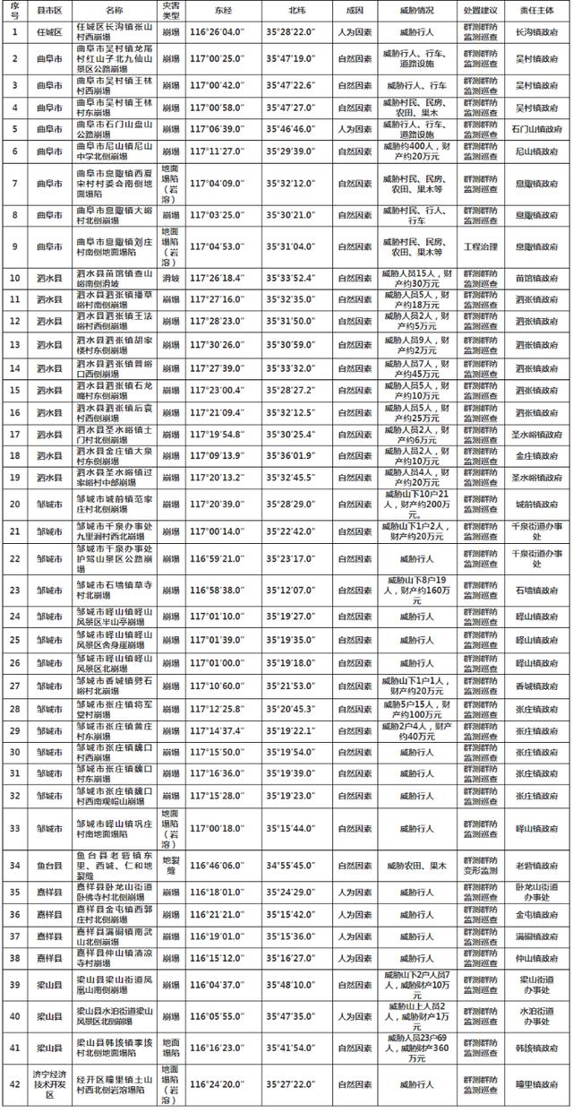 附件:濟(jì)寧市地質(zhì)災(zāi)害隱患點(diǎn)情況表