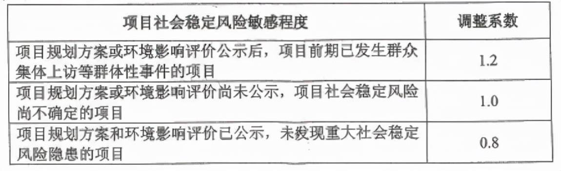 表7 社會穩(wěn)定風(fēng)險敏感程度調(diào)整系數(shù)