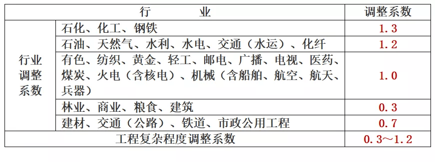 表2 按建設(shè)項(xiàng)目估算投資額分檔收費(fèi)的調(diào)整系數(shù)