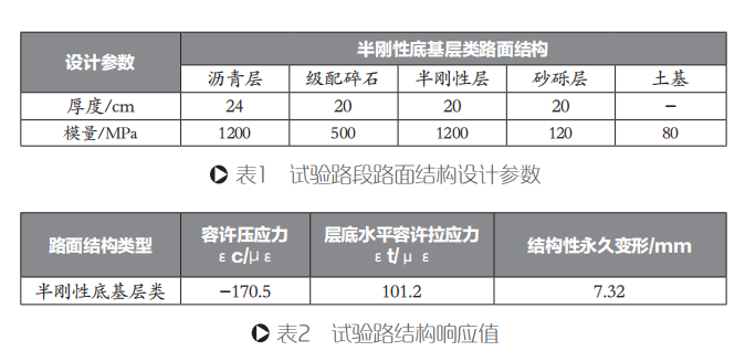 某試驗(yàn)路為某高速公路中一段半幅路,所在區(qū)域地勢平坦、開闊,路線所經(jīng)區(qū)域?qū)僦袧駧Т箨懶詺夂颉H€長3km,起訖樁號(hào)為K23+100~K26+100,路面寬度為11.5m,路基寬度為13m,路基存在填挖現(xiàn)象,且有一定的縱坡。通過對(duì)半剛性組合式基層路面結(jié)構(gòu)、路面材料和施工質(zhì)量的設(shè)計(jì)來實(shí)現(xiàn)長壽命瀝青路面。