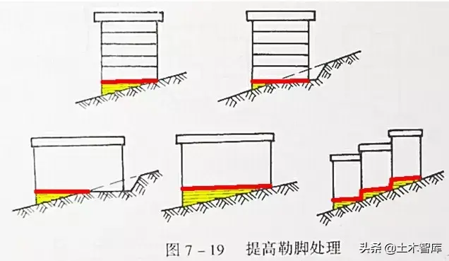 4、墻前地形平坦時(shí),用仰斜墻較合理,墻前地形較陡時(shí),用垂直較合理。