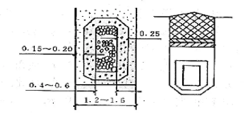 - 通常使其軸線與滑動方向基本平行,布置成平行的條帶狀,支撐滲溝的間距及斷面寬度,可按照每條滲溝所擔負的下滑力計算確定。斷面采用矩形,寬度為2~3m,間距為8~15m或更大些。