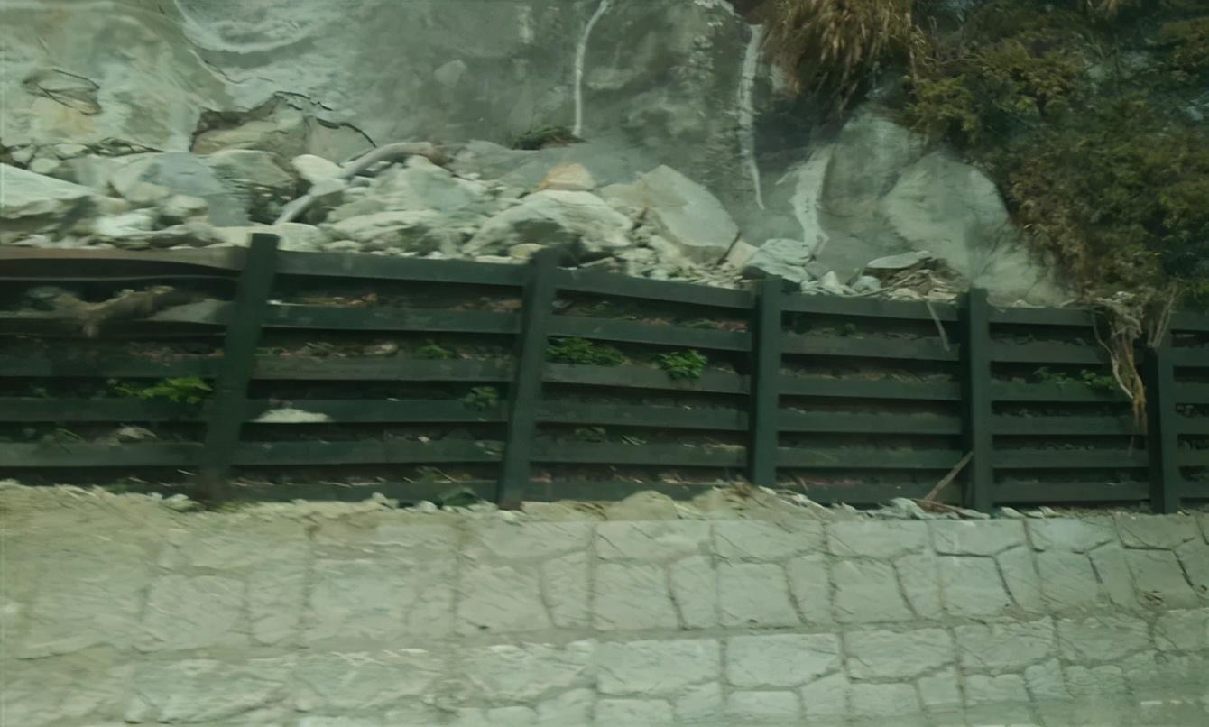 - 攔截措施:落石平臺、落石槽、擋石墻、柵欄、金屬網等,用以滯留、攔截自然山坡上的落石或小型崩塌。