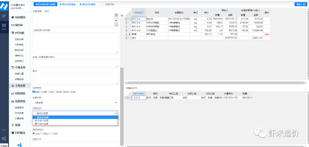 圖1 縱橫計量支付結算決算一體化云版軟件-設計變更分類