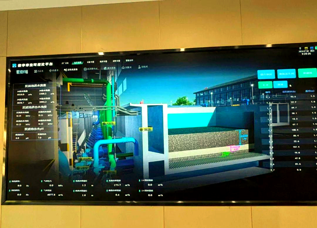 無需親臨現(xiàn)場,只需站在一張電子屏幕前,水廠的全貌、詳盡的設備數(shù)據(jù)以及管道分布情況即刻盡收眼底。借助先進的“智慧大腦”一張網(wǎng)系統(tǒng),管理水廠變得更加高效,同時確保了居民用水的安全性。