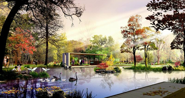 本區(qū)景觀工程用地總面積為329700平方米(32.97公頃,第二版)其中:綠化面積:172934平方米,占總面積的52.5%;水體面積:107354平方米,占總面積的32.6%;廣場:15186平方米,占總面積的4.6%;